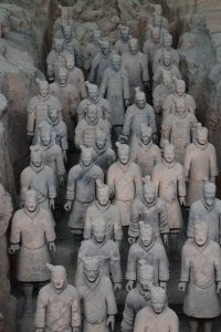 L’histoire de ce site commence le jour où un fermier décide de creuser son terrain pour y construire un puits et, à la place de l’eau, fait cette fantastique découverte : une immense caverne souterraine se cache sous son terrain ! Sur les milliers de soldats découverts aucun n’est identique à un autre et on y trouve tous les postes d’une véritable armée, comme par exemple : officier, sous-officier, archer, arbalétrier, cavalier avec leur monture, conducteur de chars etc… Vous pouvez également entendre parler de cette armée sous le nom de « l’armée enterrée », c’est d’ailleurs sous ce nom-là que je l’appelais avant de venir en Chine.