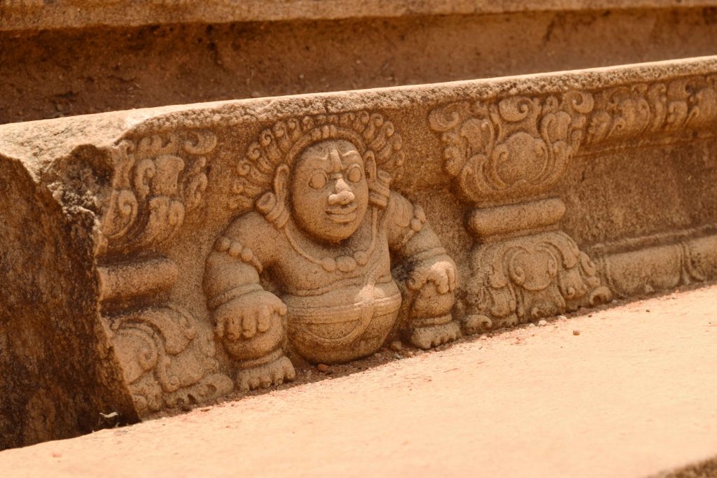 – Pierre de lune : sur le site d’Anuradhapura, vous ne verrez pas pas qu’une pierre de lune mais la plus célèbre et la plus belle pierre de lune taillée du Sri-Lanka se situe au nord-ouest du dagoba d’Abhayagiri.