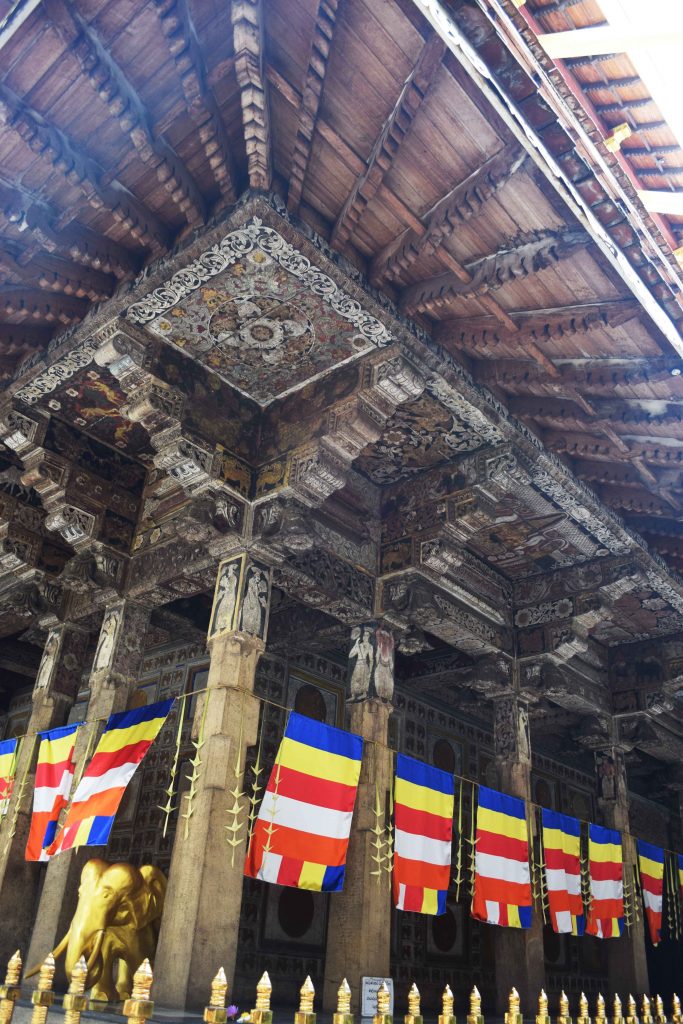 Le tour du lac quasi fini, nous arrivons devant l’entrée pour accéder au fameux temple de la dent, le Sri Dalada Maligawa en Cingalais. C’est parti, on achète le ticket (1550 Roupies en 2019), on pose nos chaussures et on couvre nos jambes et la visite peut commencer.