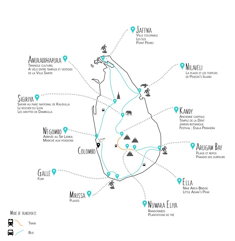 Cet itinéraire sous forme de boucle, nous a permis de visiter le Sri Lanka du Nord au Sud, en passant par des paysages des plus variés ! Entre plages, plaines, montagnes, campagnes, villes etc… Ce pays est adapté à tous les goûts !