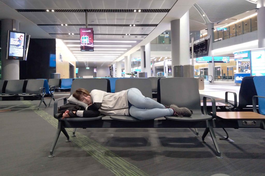 Une surprise de taille nous attendait à l’aéroport, alors que nous pensions y rester seulement 2h afin de prendre notre vol pour Beijing, le tableau affichait un retard de 5h… Comment bien commencer notre voyage ! Pas le choix, nous avons donc du passer la nuit à l’aéroport. Nous avons trouvé un petit coin tranquille sur les banquettes et nous avons pu dormir un peu par intermittence jusqu’à 4h…
