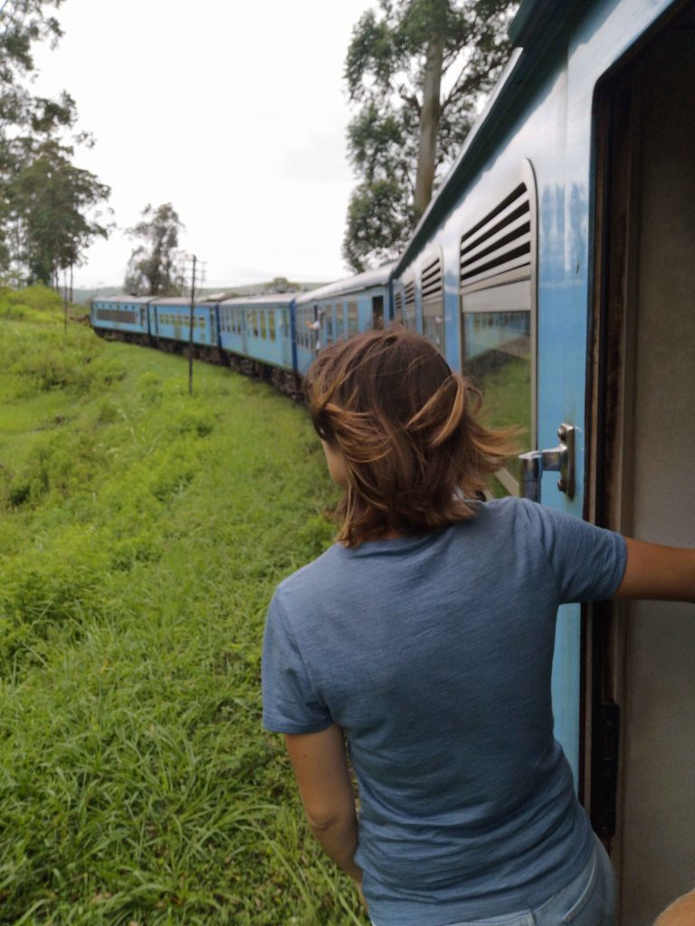 Nous avons réalisé ce trajet jusqu’à Nuwara Eliya, notre première étape, devant une porte (ouverte bien sûr) que l’on partageait avec des locaux. C’était une très belle expérience et, malgré les 4h30 de voyage, nous n’avons pas regretté les places assises !